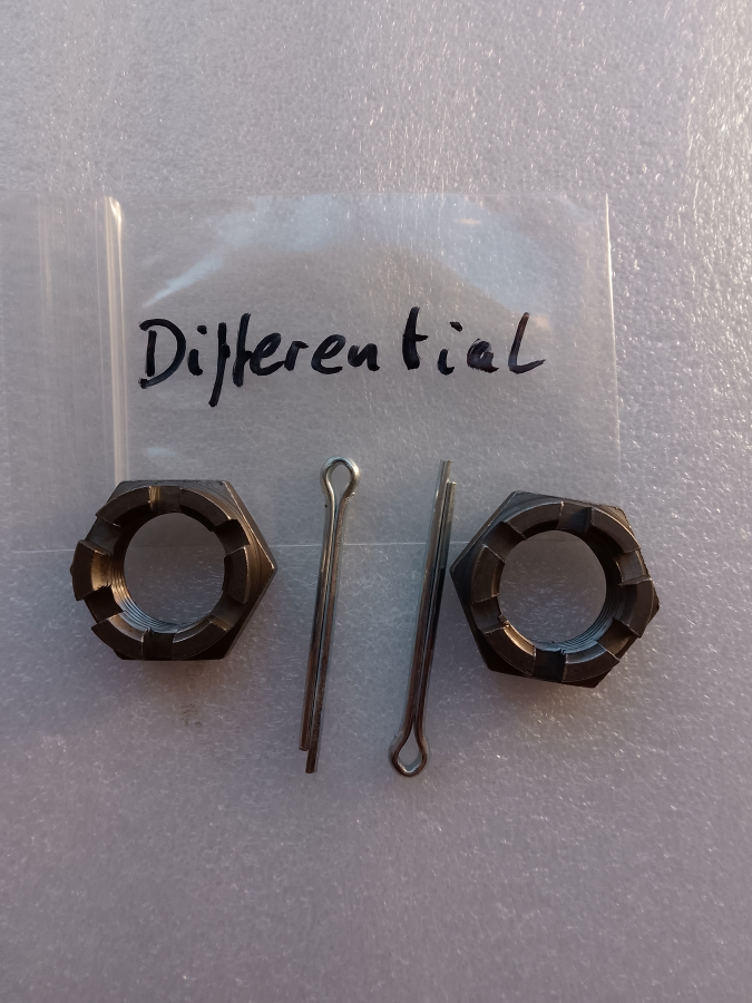 2 x Kronenmutter mit Splint für das Getriebe F 8 , P 70 Differrential