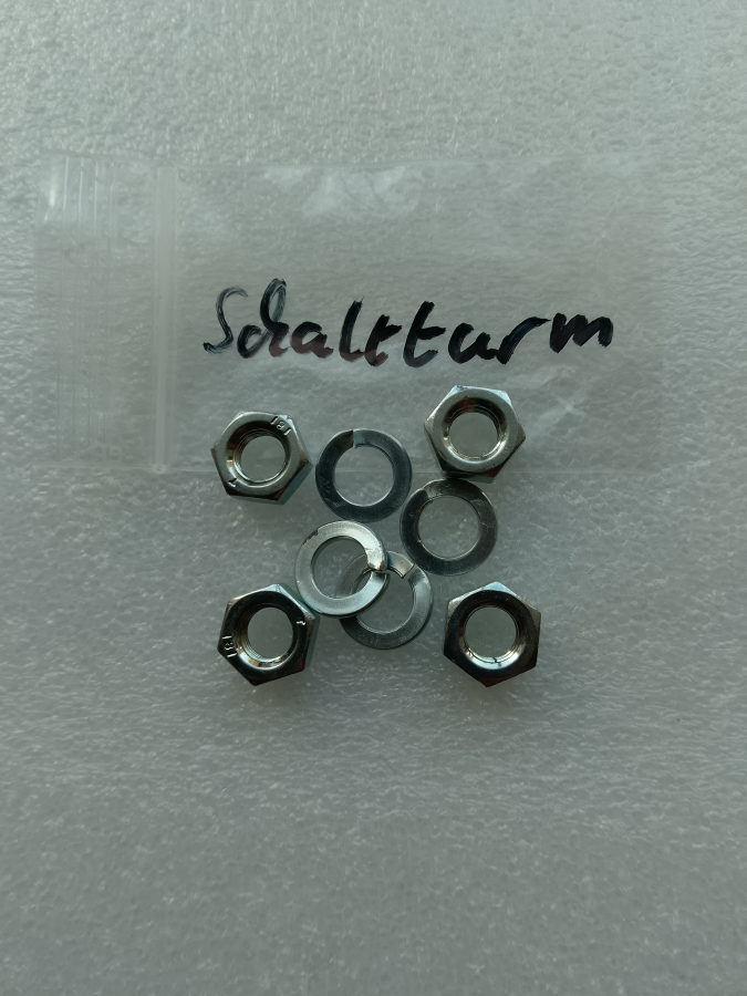 4 x Sechskantmutter M 7 mit Federringen für die Befestigung des Schaltturms am Getriebe F 8 , P 70